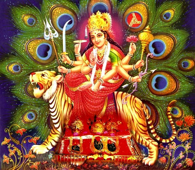 Sri Mata Vaishno Devi resides in a holy cave believed to be more than a million years old in the Trikuta mountains in Jammu. Once Adi Parashakti's 3 powers- Durga, Lakshmi & Saraswati merged together to create a beautiful girl of extraordinary brilliance called Vaishnavi. She took birth in the house of a man named Ratnakar in South India. She left home to satisfy Her spiritual cravings and was visited by Lord Rama during His exile. She desired to merge into Him but He said He would visit Her at the end of His exile. He did visit Her in the form of an old man but She could not recognize Him. Rama then directed Her to meditate in the Trikuta Hills and wait for His Kalki incarnation. Meanwhile Pandit Sridhar, a great devotee of Devi decided to conduct a huge Bhandara(community meal) with Devi's blessings. A large no. of guests turned up at his hut but were easily accomodated due to Devi's blessings. Vaishnavi had appeared in the form of a young girl and helped him conduct the bhandara. At the bhandara, a sanyasi called Bhaironath who was charmed by Her beauty forced her to marry him but She escaped. He followed Her and was eventually beheaded by Her at the entrance of the main cave. His head landed at the place where the Bhairon Mandir stands today, a visit to which is considered necessary to complete the Vaishno Devi Yatra. Devi resides here in the form of 3 natural rock formations-Kali,Lakshmi & Saraswati from right to left.